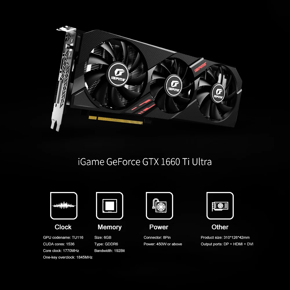 | Colorful iGame GeForce GTX 1660 Ti Graphics Card Nvidia GPU GDDR6 6G Gaming Desktop Video Card 192 bit DP/HDMI/DVI PCI-E 3.0 |