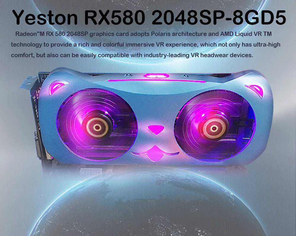 Yeston Radeon RX580 2048SP-8G GDDR5 video gaming graphics card external graphics card for desktop CUTE PET PCI Express x16 3.0 Drop ship support !! Wholesale big discount support !! Basic specification parameters: Note: