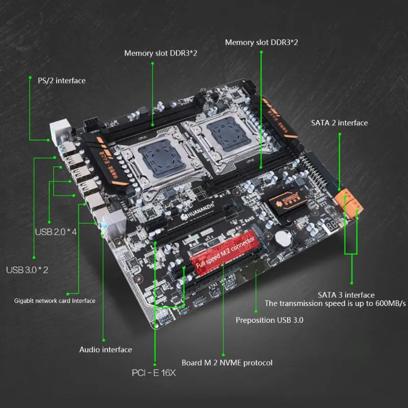 | Huananzhi X79 Dual CPU Motherboard LGA 2011 E-ATX USB3.0 SATA3 PCI-E NVME with Dual Xeon Processor |