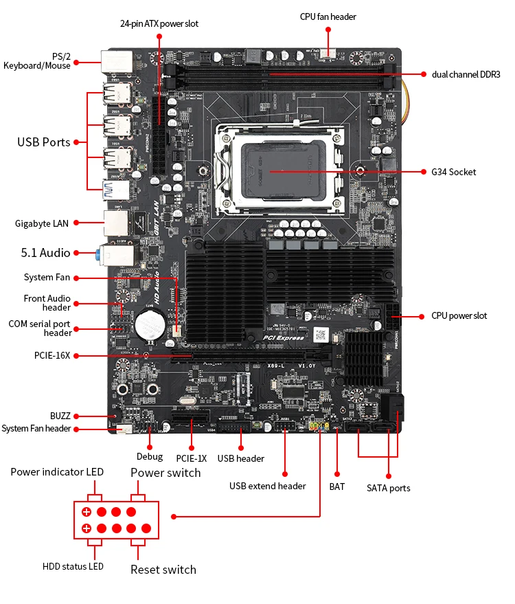 | JINGSHA AMD X89 G34 Socket Motherboard set with 2*16gb=32 DDR3 1600mhz Memory and AMD Opteron 6281 and 1pc cpu cooler |