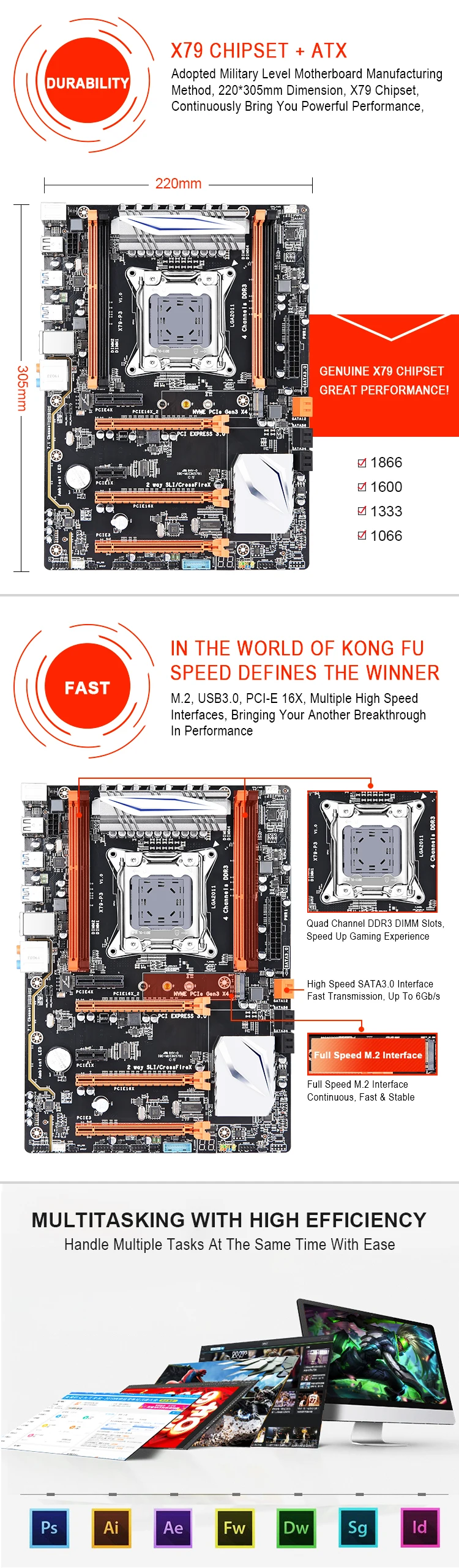 | JINGSHA X79P3 LGA motherboard set Quad channels with Xeon E5 2690 and 4 * 8GB=32GB 1600MHZ ddr3 ecc reg RAM |