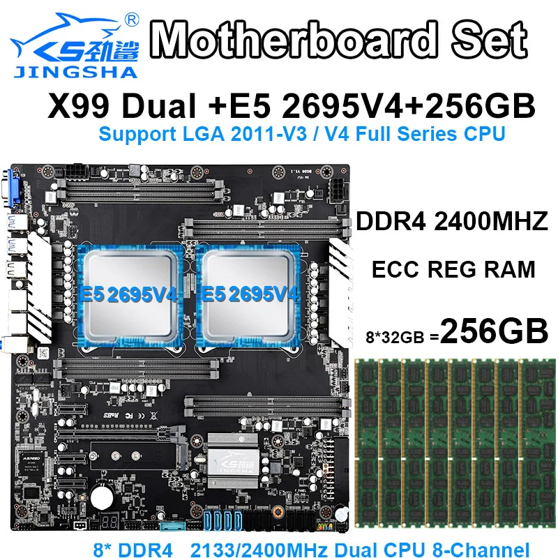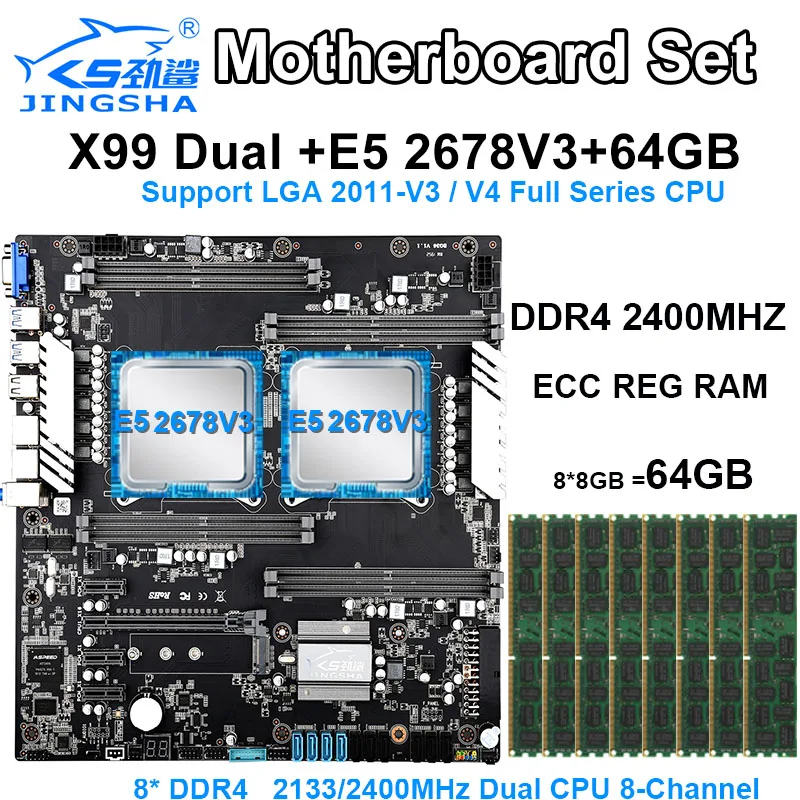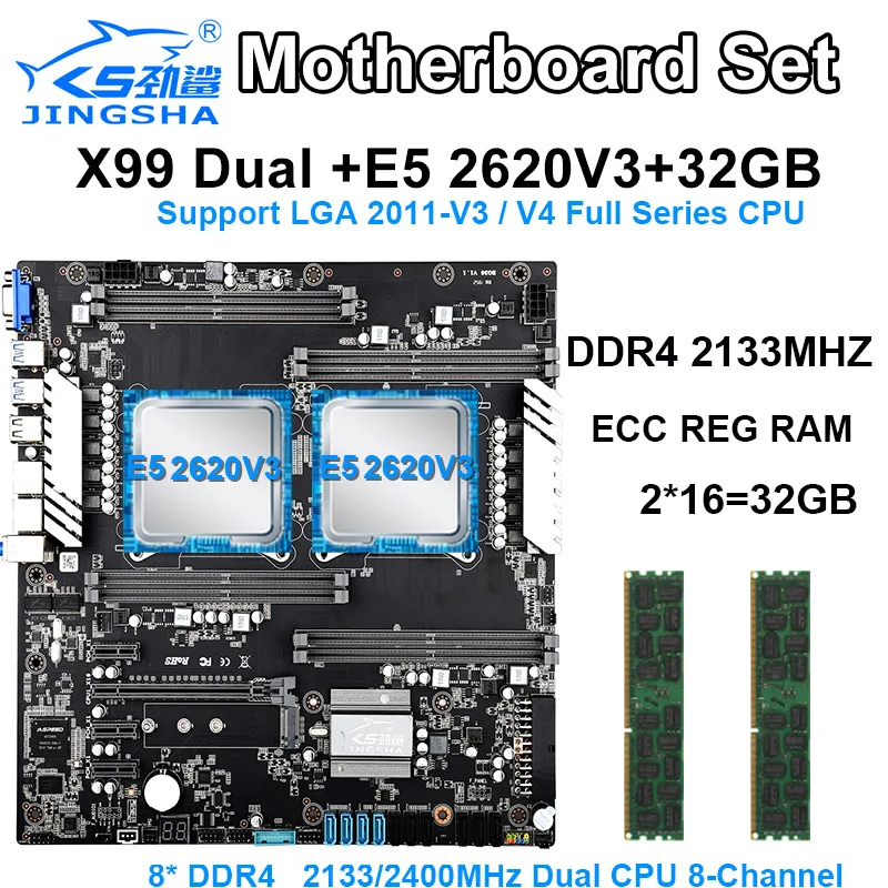 Best Price Comparison With JINGSHA X99 dual motherboard set with 2pcs XEON E5 2620V3 six-core ProcessorSupport MAX 2400MHz 8-Channel LGA 2011 V4 CPU