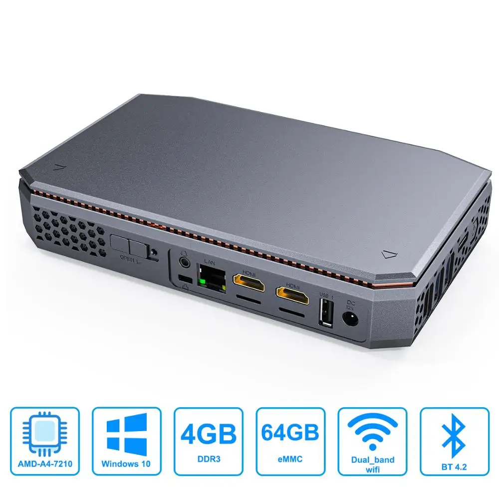 | Mini PC AMD E1-7010A4-7210 Windows 10 Dual WIFI T13 AMD Fanless Mini Computer DDR3 NetTop 4*USB BT4.2 300M WIFI HDMI Gaming PC |
