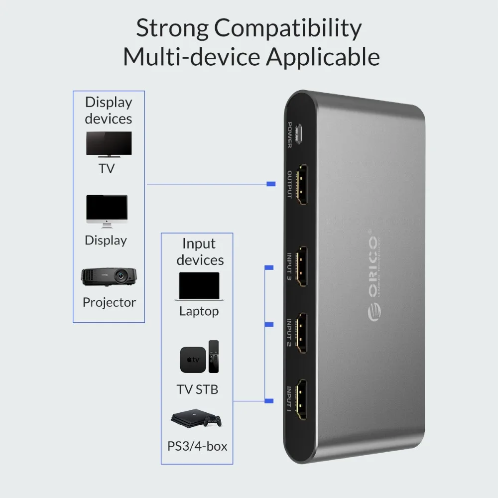 ORICO 3 Input 1 3 Ports KVM Switches Output 4K 60Hz HDMI 2.0 Switcher 3 Port for PC Laptop XBOX 360 PS3 PS4 TV DVD