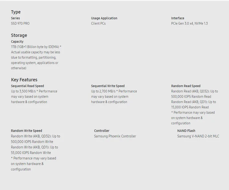 US $199.00 - 399.00Samsung SSD 970 PRO NVMe M.2 512GB 1TB Internal Solid State Drive M2. 2280 Read Speed Up To 3500MB For Desktop Laptop