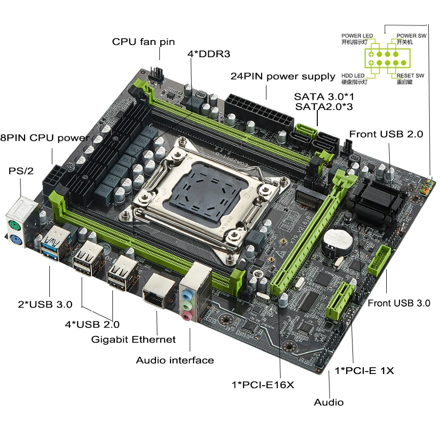 | qiyida X79 M6 V2.81 motherboard LGA2011 motherboard X79chip USB3.0 SATA3.0 M.2 support DDR3 REGECC memory and Xeon E5 processor |