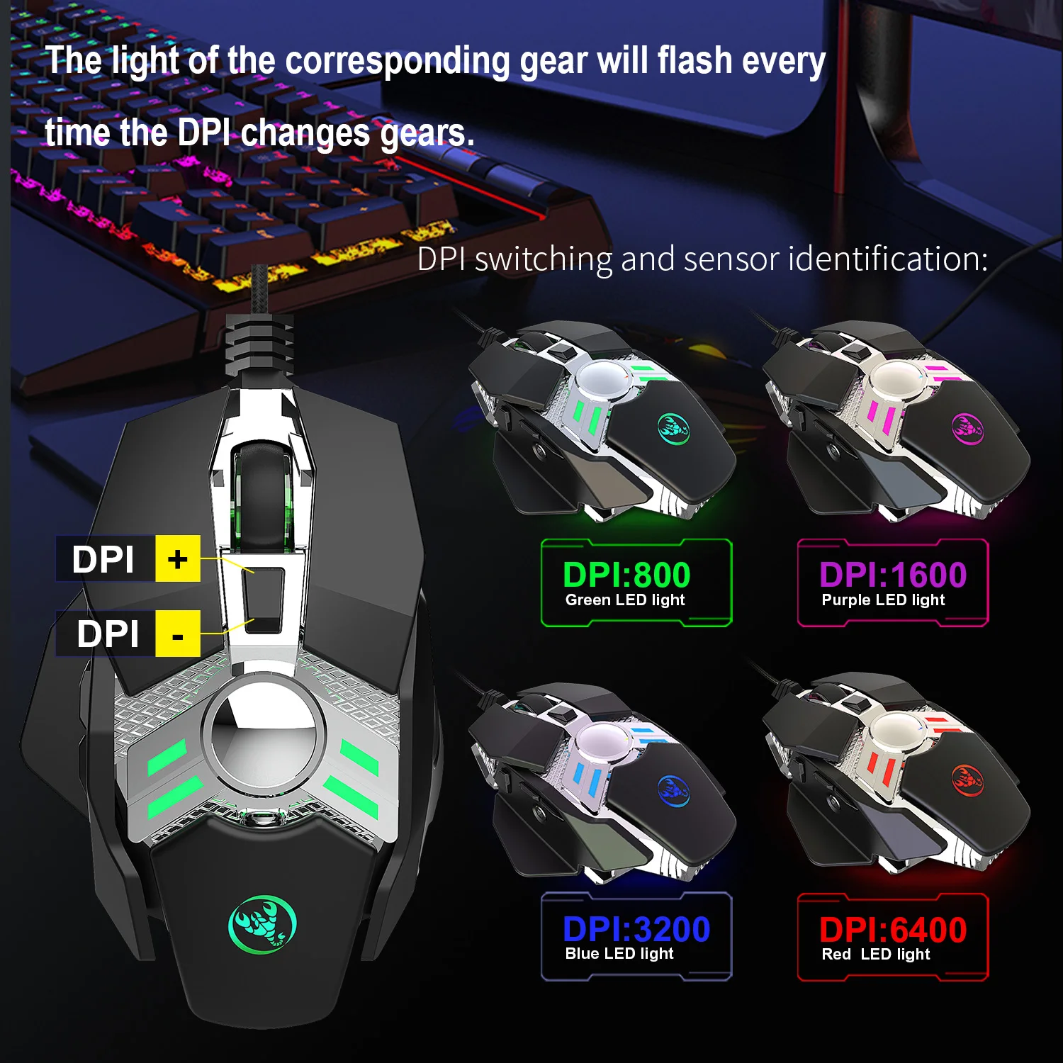 | Wired Gaming Mouse 6400DPI Adjustable 7 button Macro Programming Professional-Grade Gamer Mice Wired Mouse for PC laptop |