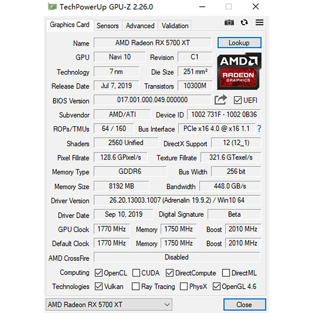 The RadeonTM RX5700XT graphics card uses the RDNA architecture and AMD LiquidVRTM technology. The RDNA is a new design with superior performance and energy efficiency. It is the architecture used to build AMD 7nm gaming GPUs. Per clock performance compared to previous 14nm processors. It is 1.25 times the original 1. The RDNA architecture is equipped with GDDR6 memory and supports PCI Express 4.0 for next-generation games.