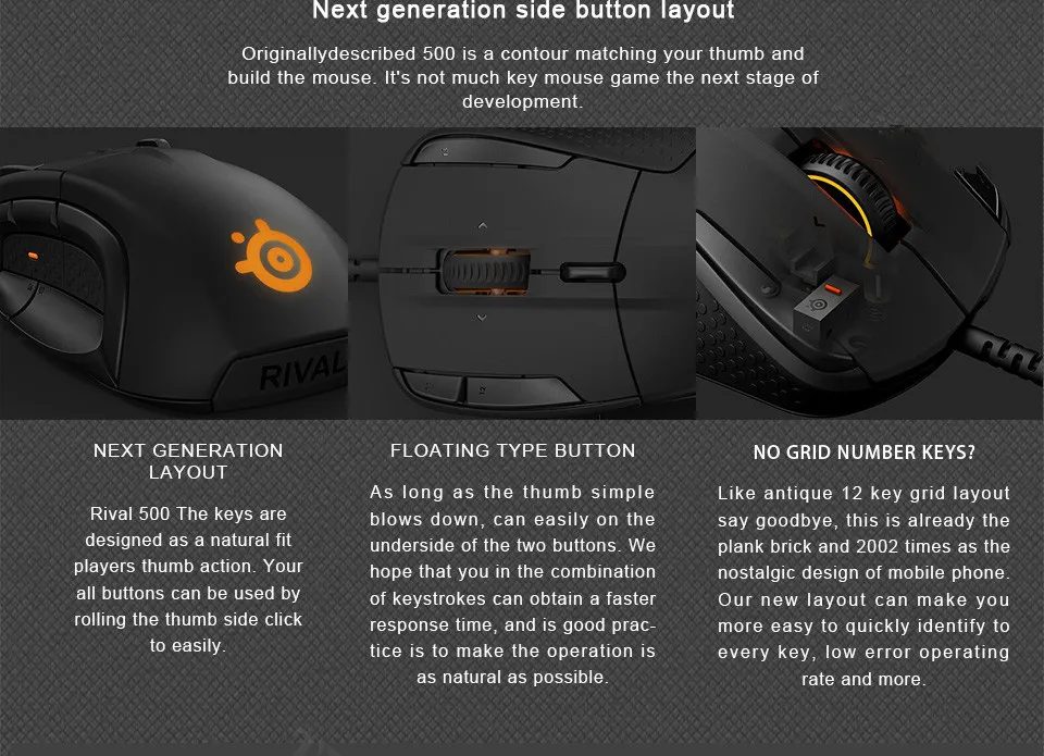 | All New SteelSeries Rival 500/700 Gaming Mouse FPS RTS MMO LOL WOW Gamer Mice USB Wired 6500 DPI Optical Mouse Black Edition |