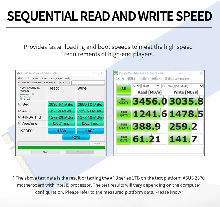 Asgard M.2 ssd M2 PCIe NVME 500GB 1TB Solid State Drive 2280 Internal Hard Disk for Laptop with cache Please note that the above all data is just based on our testing,100% real testing,but the actual performance will vary from host configuration,operating system and applications.