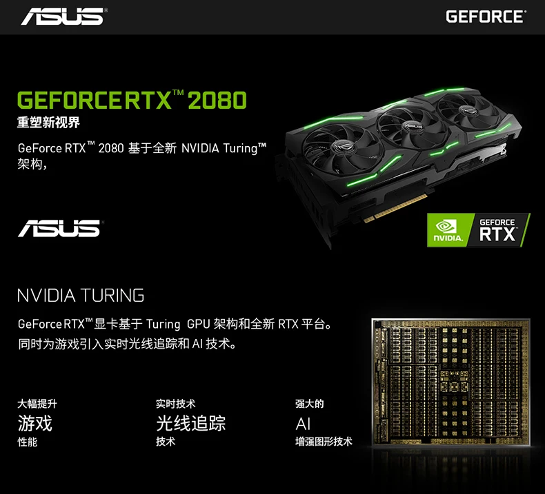 | Asus ROG STRIX-RTX2080-O8G-GAMING Turing Architecture Desktop Game Graphics Card GDDR6 Support 4 screen output |
