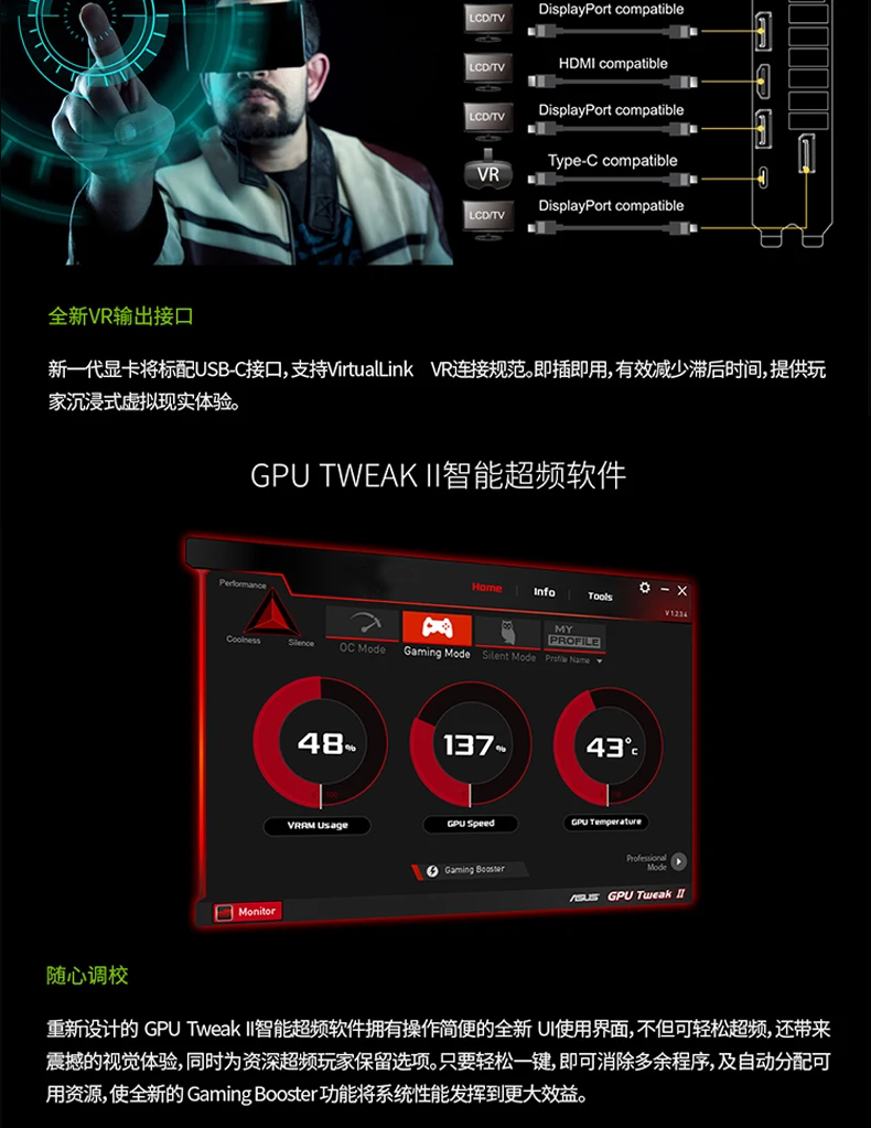 ASUS DUAL-RTX2080TI-O11G Turing Architecture Desktop Game Graphics Card GDDR6 Support 4 screen output