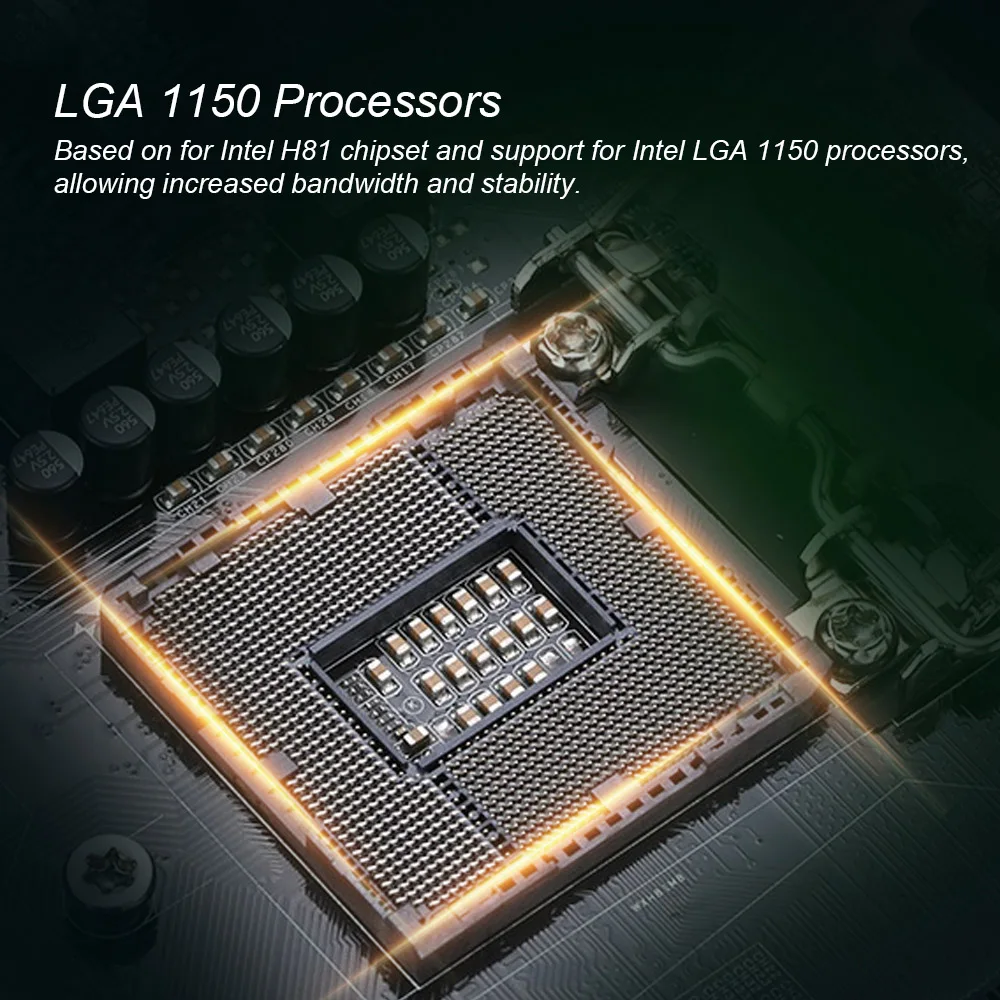Based on for Intel H81 chipset and support for Intel LGA 1150 processors, allowing increased bandwidth and stability