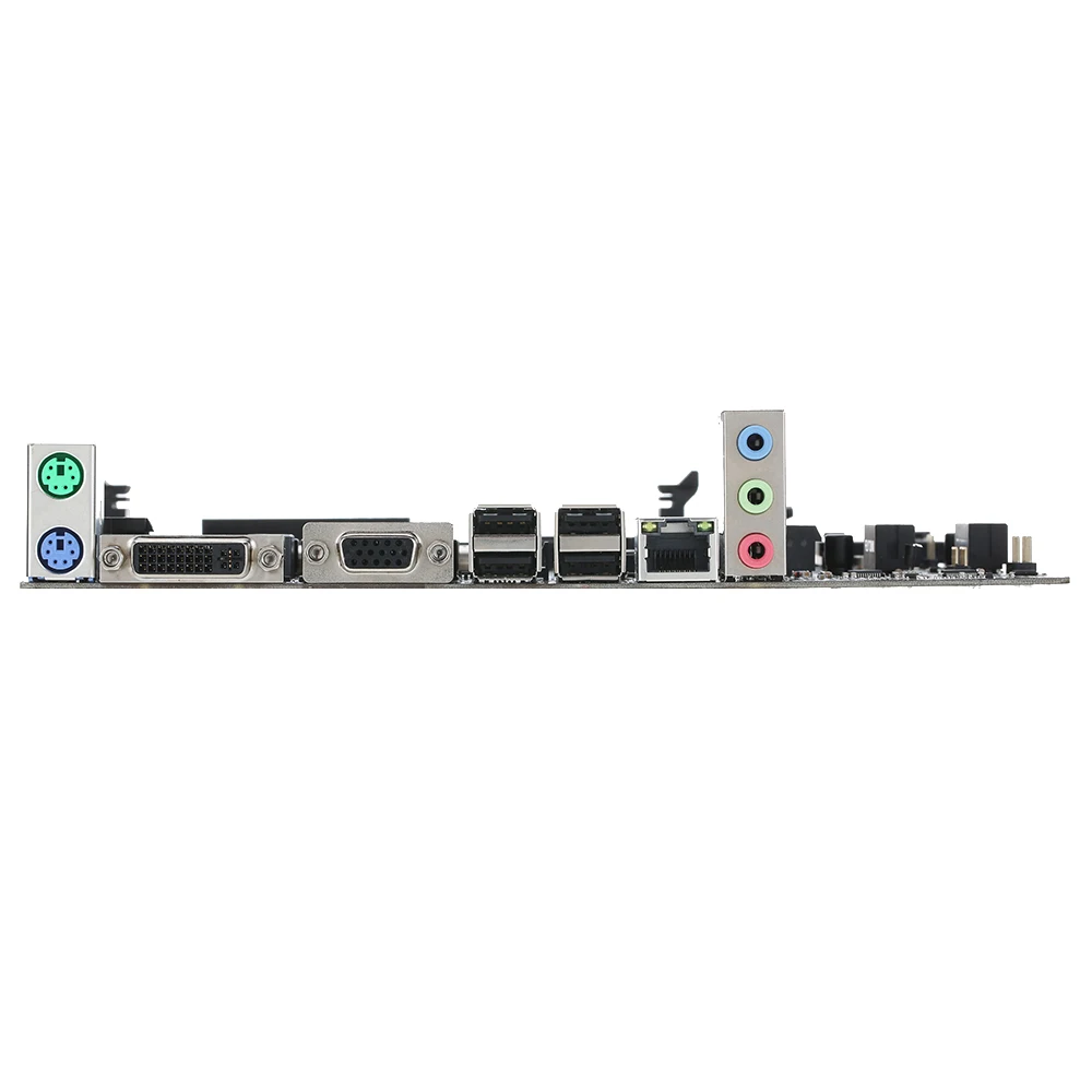 Back panel I/O ports: 2 * PS2 port, 4 * USB2.0 port, 1 * RJ45 port, 3 * AUDIO port(6-CH), 1 * VGA port, 1 * DVI port (1 * HDMI)