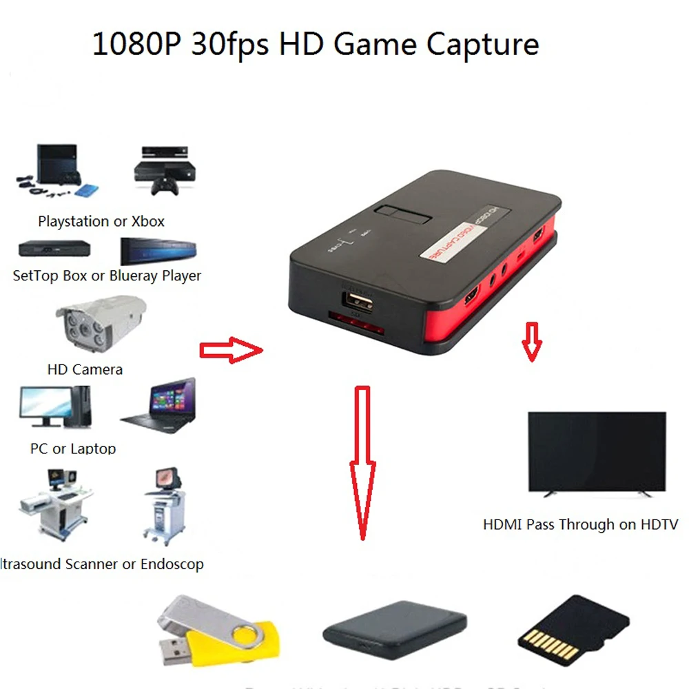 | Hdmi capture 1080P HD video into USB disk or SD Card directly,no PC enquired. Free shipping |