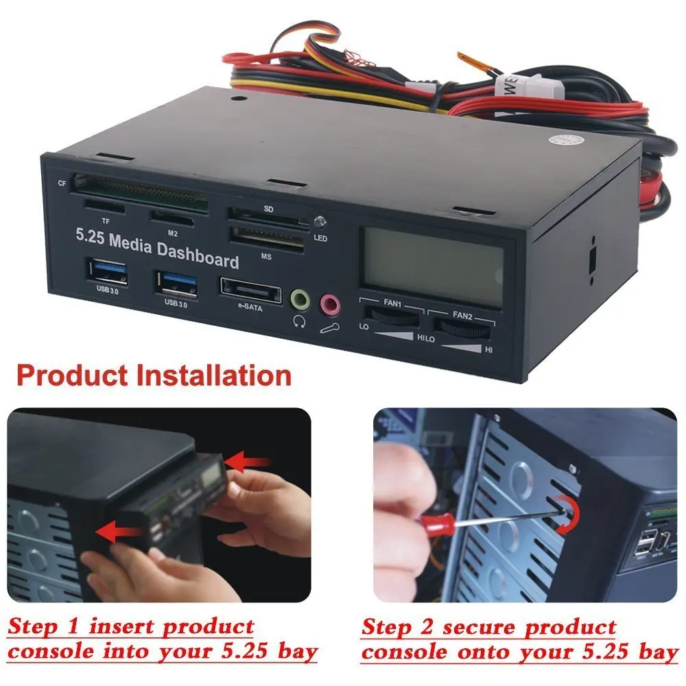 | Multifunctional Media Panel 5.25 inch Computer Front Dashboard with SATAeSATA, USB 2.0USB 3.0, MicrophoneHeadphone Audio Po |