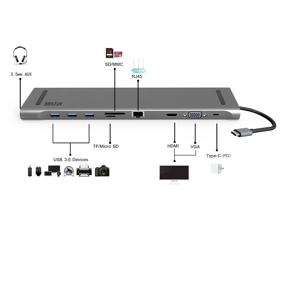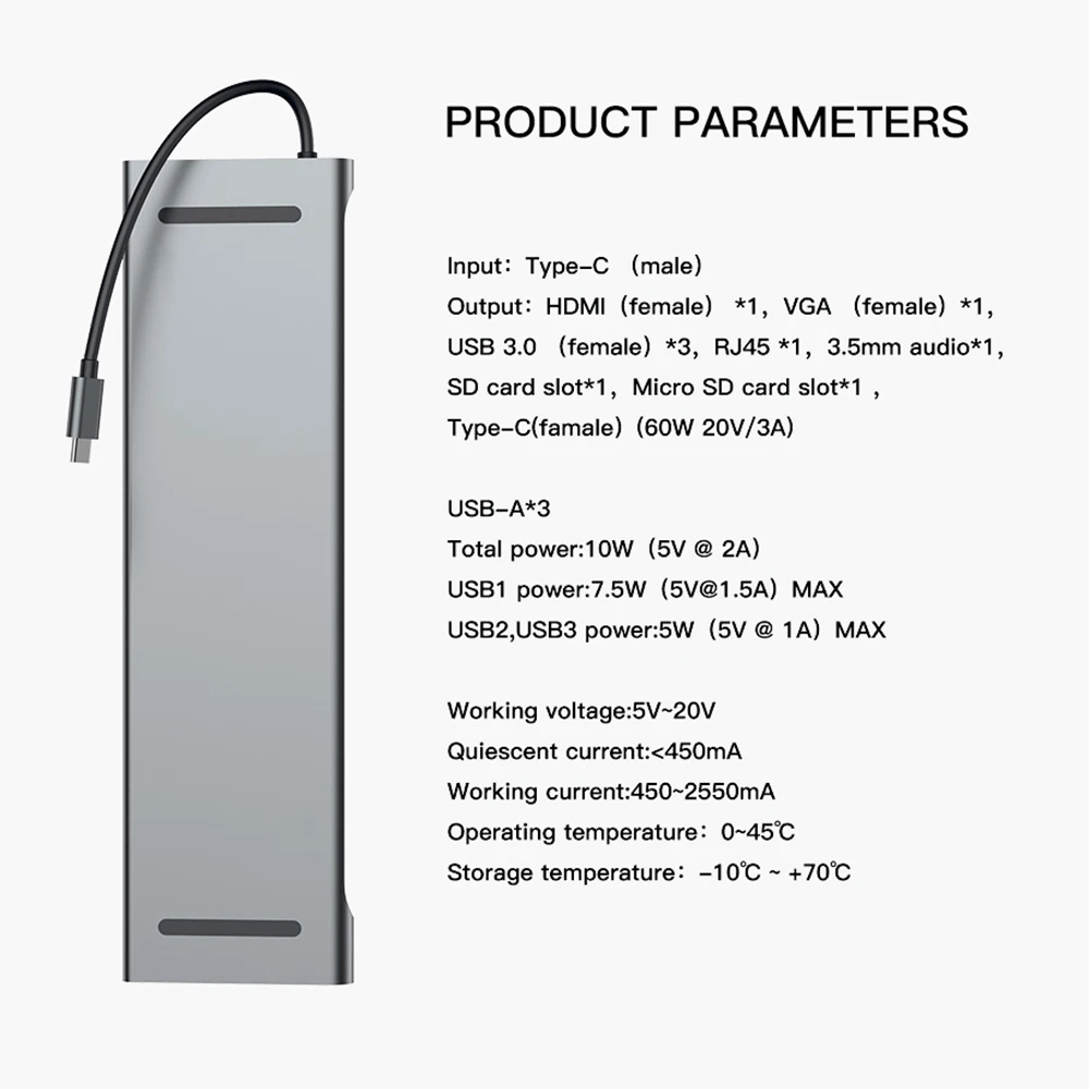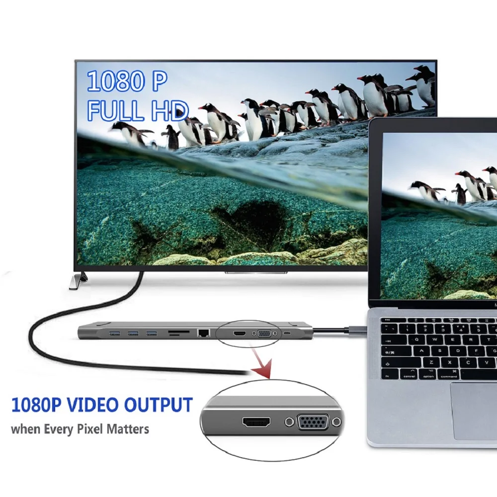 | USB Type C HUB Type C to HDMI VGA RJ45 Multi Ports USB 3.0 for MacBook Pro Air USB Splitter Multi 10 Ports Type C HUB USB-C HUB |