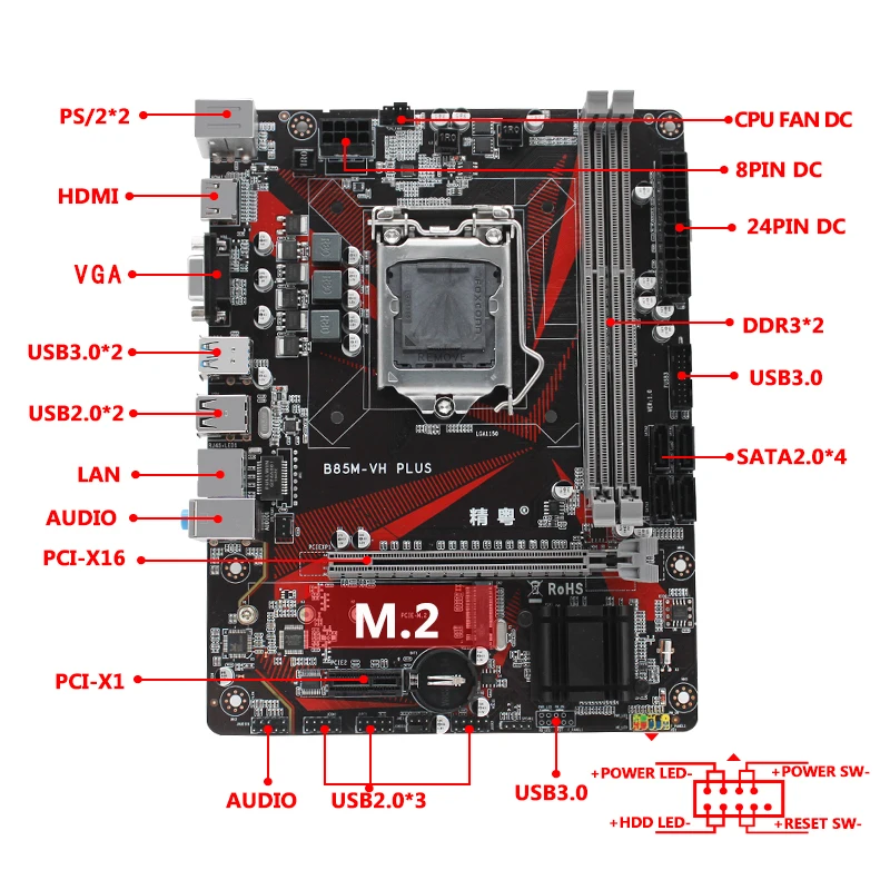 | B85 Motherboard LGA1150 HDMI VGA SATA III USB 3.0 DDR3 32G Memory M.2 NVMe SSD For Intel CPU I3 I5 I7 CPU Desktop Mainboard |
