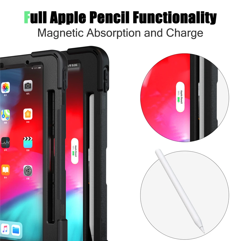 | For iPad Pro 11 Case 2018 Shockproof Tablet Case with Pencil Holder Shoulder Strap PC + Silicone Protective Cover Back Shell |
