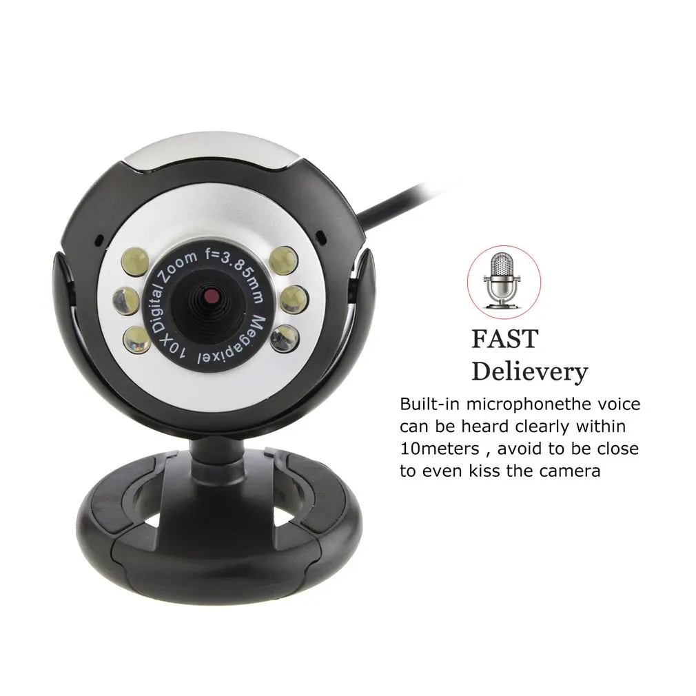 | Usb Video Web Camera Six Lights Night Vision Drive-free Clip Camera Computer Webcam with MIC for PC Laptop Camera |