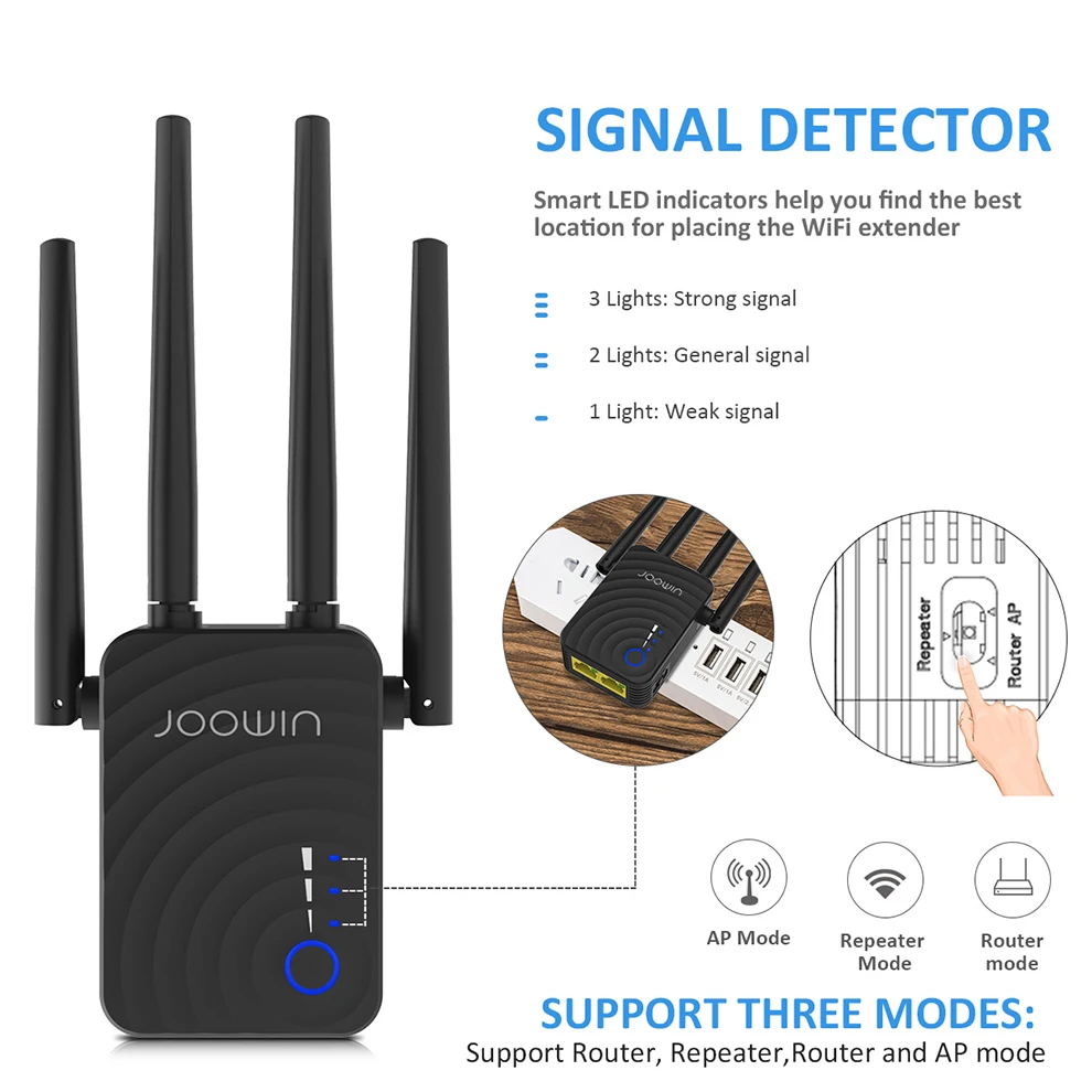 The best product you are looking for is "1200Mbps Dual Band AC Wireless 2.4G 5G Wifi Repeater 4 High Antennas Bridge Router Signal Amplifier Wired Access Point router". This product is available and ready to be purchased. Get attractive discounts every time you shop in our store (aliexpress.com). Aliexpress also provides a coupon of $ 3 for the first buyer to shop there. don't forget to bookmark our store page so you can go shopping again anytime..